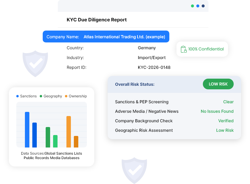 Stop worrying about hidden risks in your supply chain or customer base. Get comprehensive, bank-ready due diligence reports driven by advanced AI and verified by human intelligence. Delivered to your inbox in 48 hours.